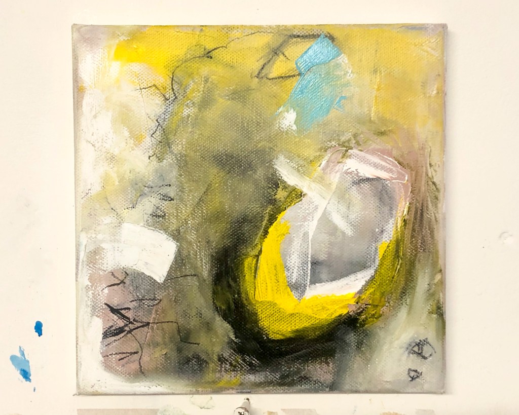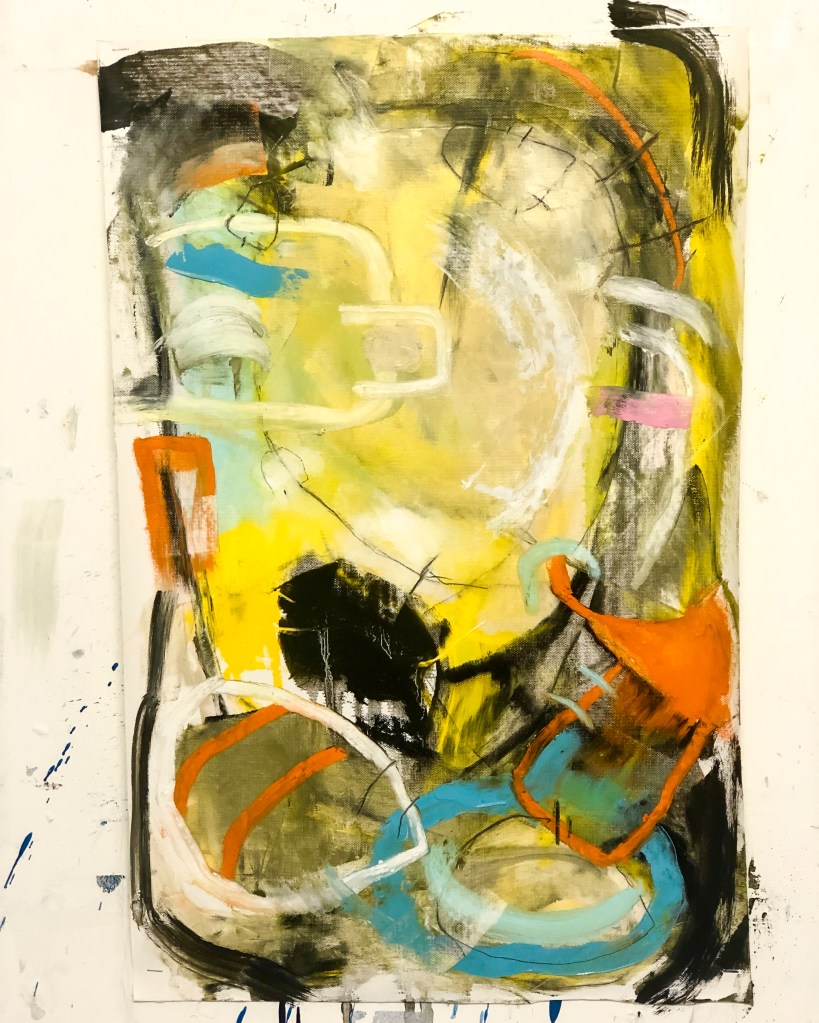 These began as gestural quick marks that all came about in one session within 4 hours. It was an expressive beginning to something I wanted to explore using yellow and orange, colours I love using together. The mediums used were both oil paints and oil sticks.