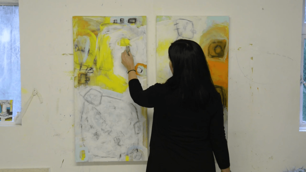 This is a small snip of today’s recording of a current work in progress. It is a diptych in 100 x 100 cm (or both at 50cm x 100cm) that I am working on. They can live either together or apart I am hoping, at the finished stage.