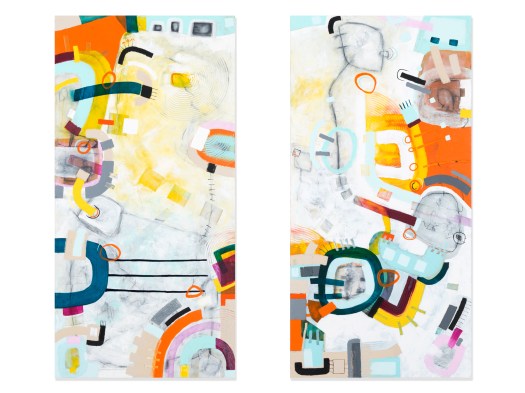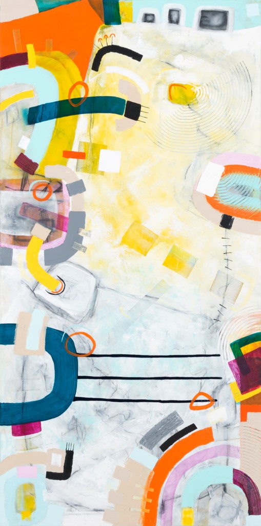 I just finished this diptych yesterday. It was a troublesome one and took longer than other paintings to get to a place I was happy with so I hope the time and work paid off. I started it early in the COVID19 lockdown and I just wanted to paint something large scale away from the small works I hade been doing. It turned out that I wasn’t able to get the type of canvas I wanted in large size due to stock limits and lots being sold out in the art shops, so I decided to get 2 100×50 canvases and put them together as a diptych. It’s been years since I did one and it’s an interesting way to paint and try make 2 work together. I probably should have titled it ‘social distance broken rule’ thinking of it now in a funny way 🙃